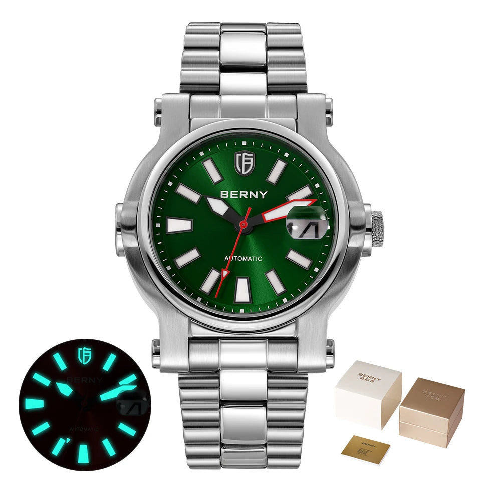 O relógio é fabricado com aço inoxidável 316L, um material antialérgico e altamente resistente à corrosão, oferecendo resistência, brilho e durabilidade excepcionais.
