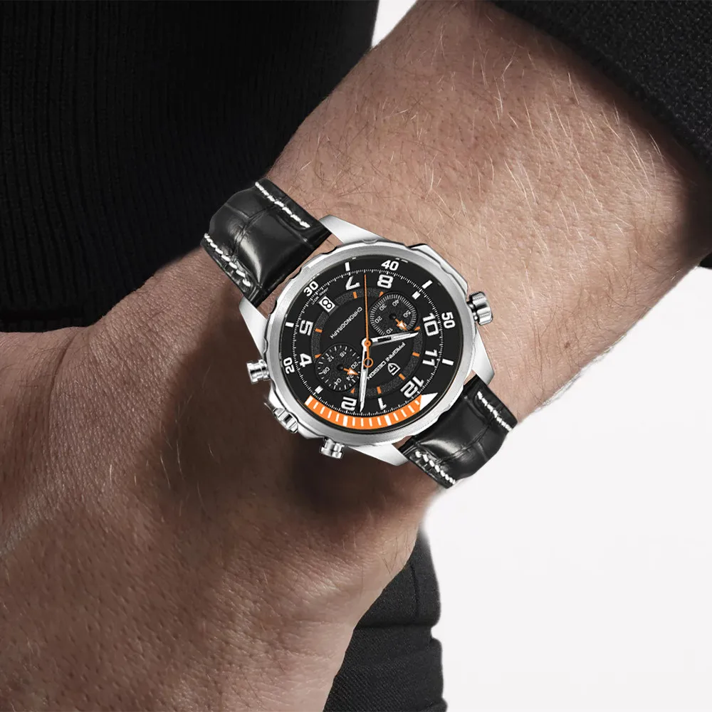A pulseira é cuidadosamente projetada com materiais premium, combinando a resistência e durabilidade do couro. Proporciona um conforto incomparável e uma sensação única de estar usando um relógio quase imperceptível no pulso.