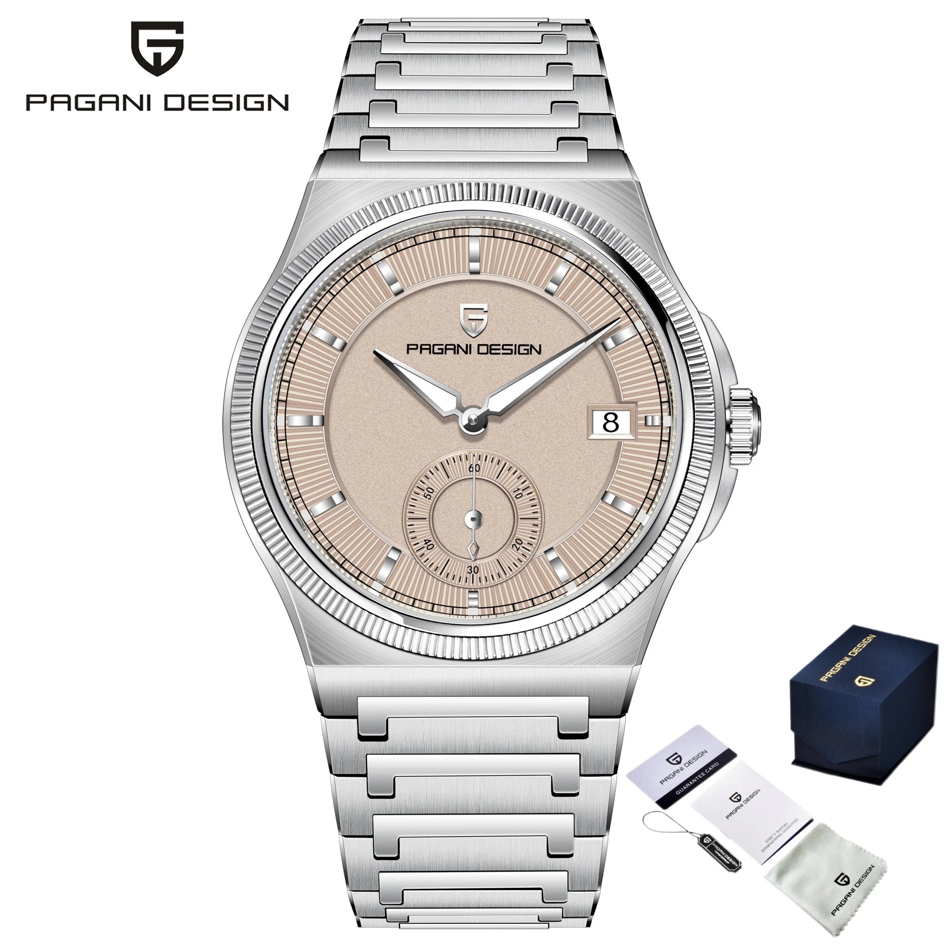 O relógio é fabricado com aço inoxidável 316L, um material antialérgico e altamente resistente à corrosão, oferecendo resistência, brilho e durabilidade excepcionais.
