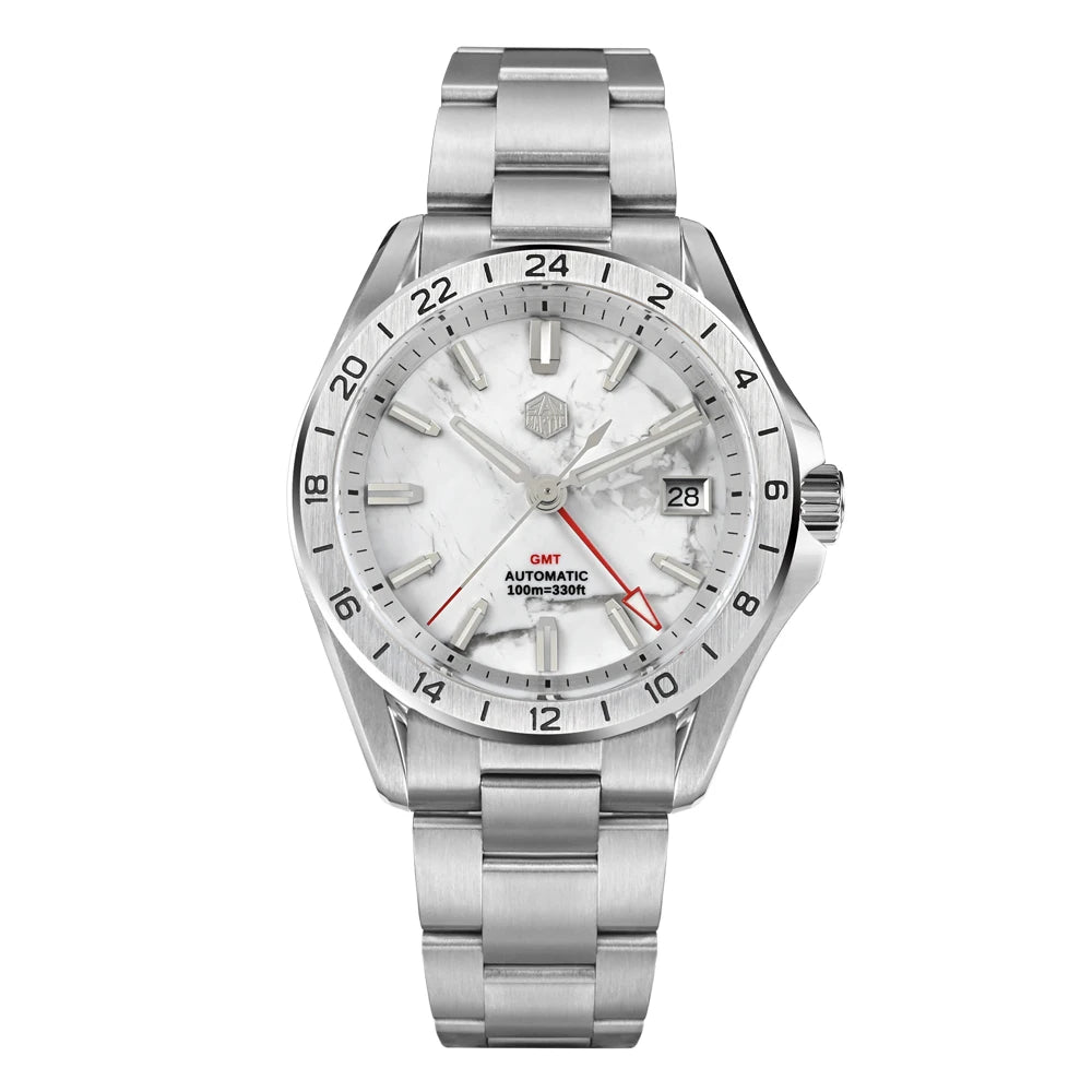 O relógio é fabricado com aço inoxidável 316L, um material antialérgico e altamente resistente à corrosão, oferecendo resistência, brilho e durabilidade excepcionais.