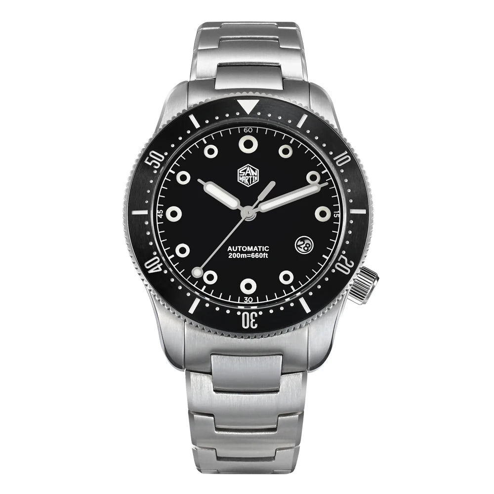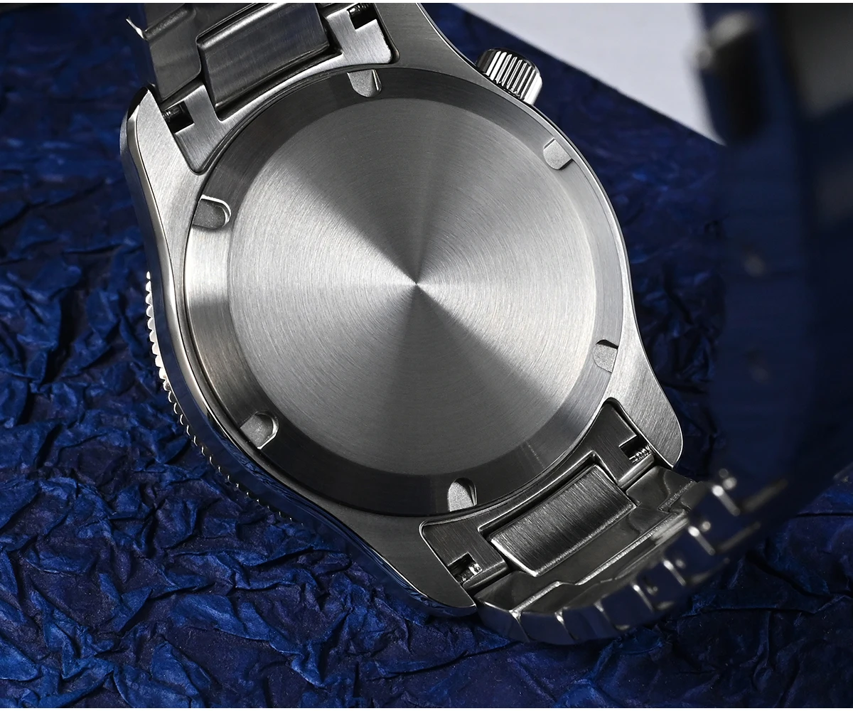 O relógio é fabricado com aço inoxidável 316L, um material antialérgico e altamente resistente à corrosão, oferecendo resistência, brilho e durabilidade excepcionais.